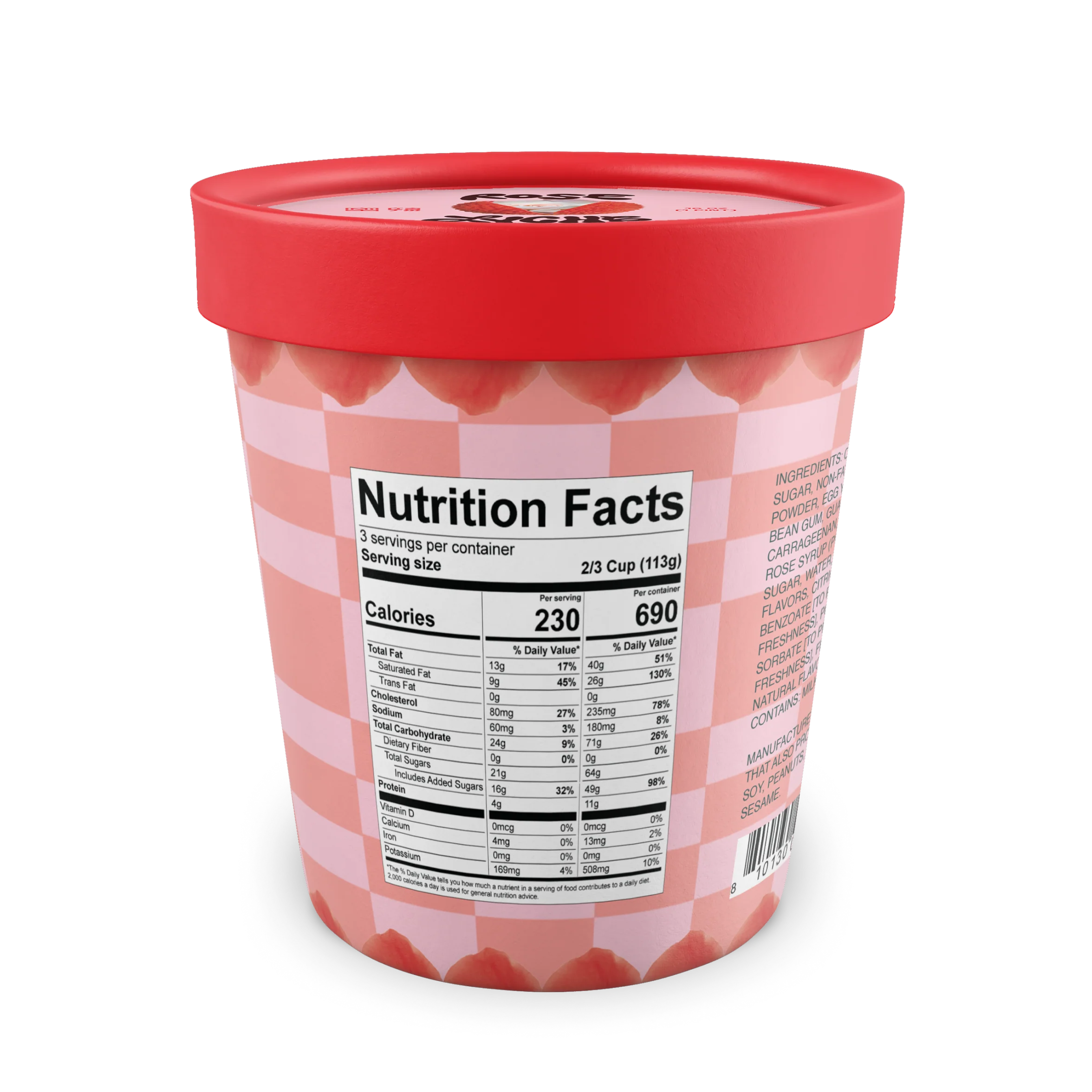 16 oz. pints of smooth, creamy ice cream to finish off the perfect meal. This is our unique take on ice cream — a bright & fruity ice cream with refreshing bits of lychee and gentle notes of rose petals. Pairs well with fresh fruit and citrus to cool off on a hot summer day.